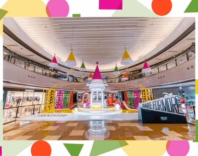 商场与全球色彩权威机构Pantone Color Institute 合作,联合发布了四款代表色,并融入圣诞装饰与活动装置中。