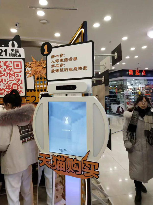 在几十坪大小的快闪店,门口安置的分体人脸采集器,只要对准镜头3秒,就能快速采集到消费者的身体数据。快闪店根本不需安装试衣间,只要将看中的衣服放到试衣镜前,利用RFID自动感应功能,消费者就能看到衣服套在自己身上的模样,还能查看商品相关信息,直接线上购买。