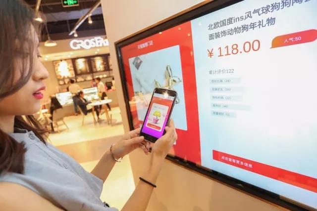 当用户扫描二维码后即可开启体验之旅,参与门口大屏游戏互动后系统自动引导进入超级试衣镜2秒换装,在体感云货架拿起商品与大屏对话,还可用手淘AR扫描商品信息等。