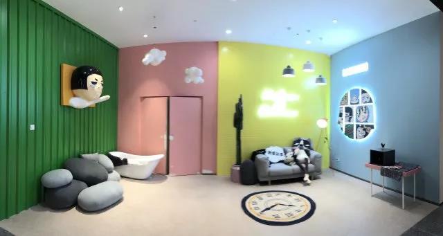 而场景中搭配的雕塑摆件、金属质感马克杯、卡通玩偶都可供消费者拍照留念。