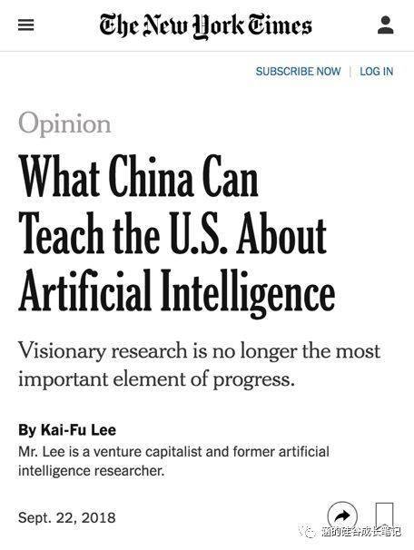9月,李开复在《纽约时报》说,中国AI的进步,不只是靠人多和政府补贴,还有中国的数据深度和应用普及。