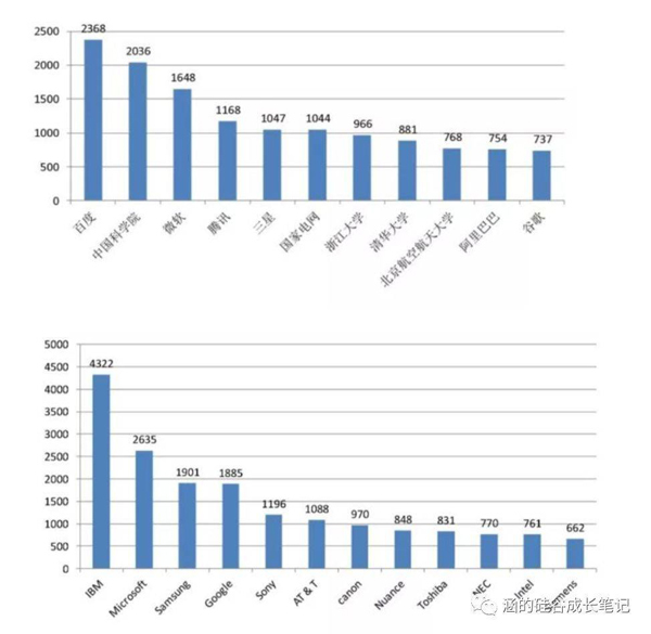 11月,中国专利保护协会权威发布《人工智能技术专利深度分析报告》。中国AI累计的相关专利数量,已经以76876份,超越美国的67276份,成为第一。以发明人单位进行查看,虽然排名中国第一的百度依然不及美国IBM和微软,但也已超越三星谷歌位列前三。