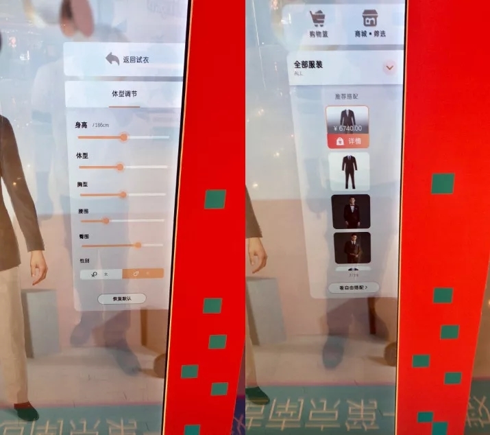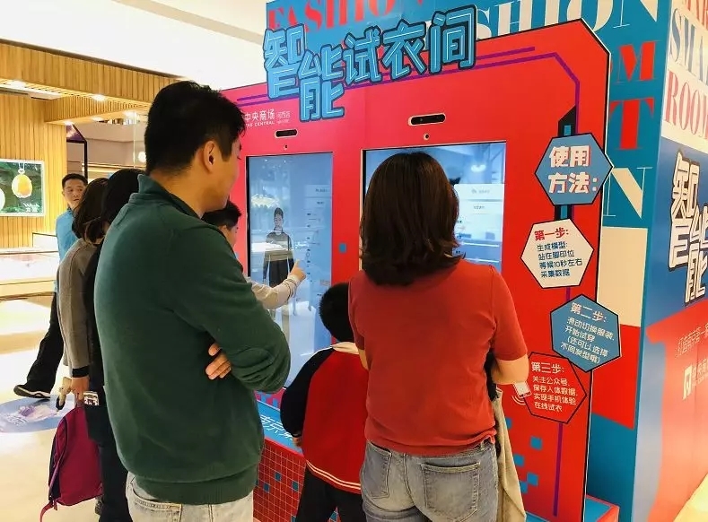 除了杭州的银泰商场,南京河西中央商城也紧跟多场景联动营销的步伐,当天在云之梦智能试衣镜停留的人络绎不绝,左看看右看看,不到3秒人体形象就能出现在屏幕里。